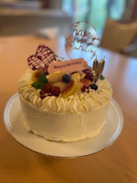 ケーキは桃とイチジクでつくりました(o^―^o)