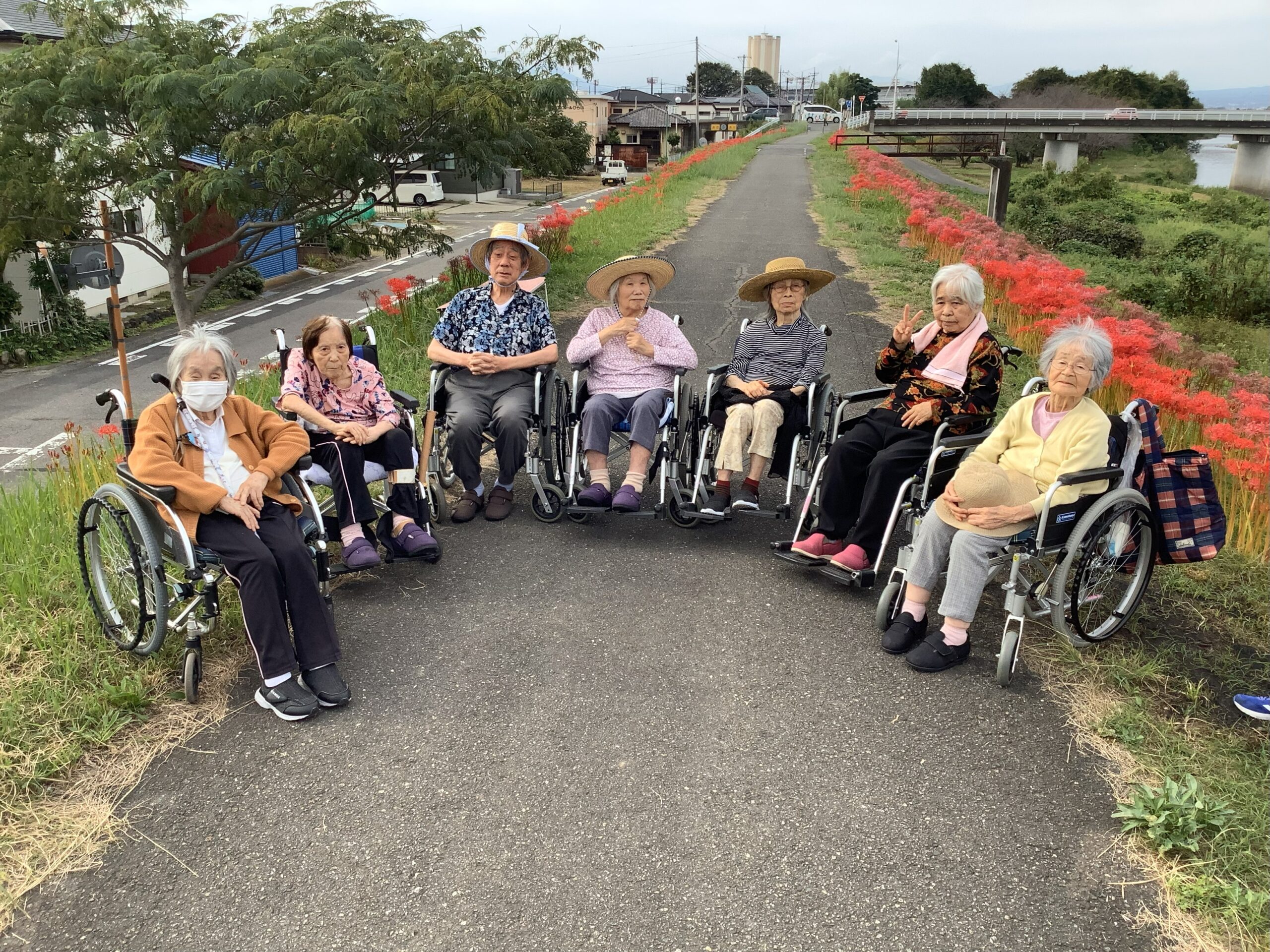 10月初旬 上毛新聞を見た入居者さんから「わたしコレ見たい!」と希望があり、新聞を良く見るとすぐ近くだったので「明日行きましょう♪」となり「彼岸花」を見てきました。思い立ったらすぐできるのが小規模なグループホームの良さですね。