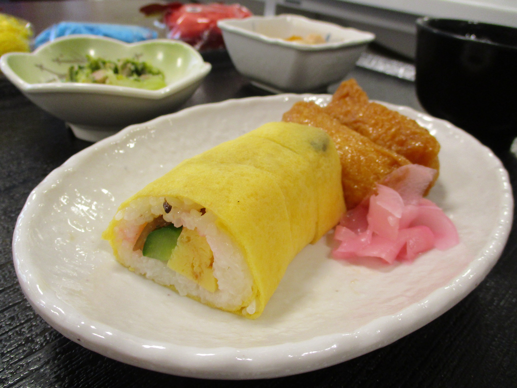 2月3日は節分で太巻きを提供しました。歯切れよく見た目も華やかな卵シートで酢飯を包んでいます。手でつまんでおいしそうに召し上がっておりいつも以上に大好評でした。