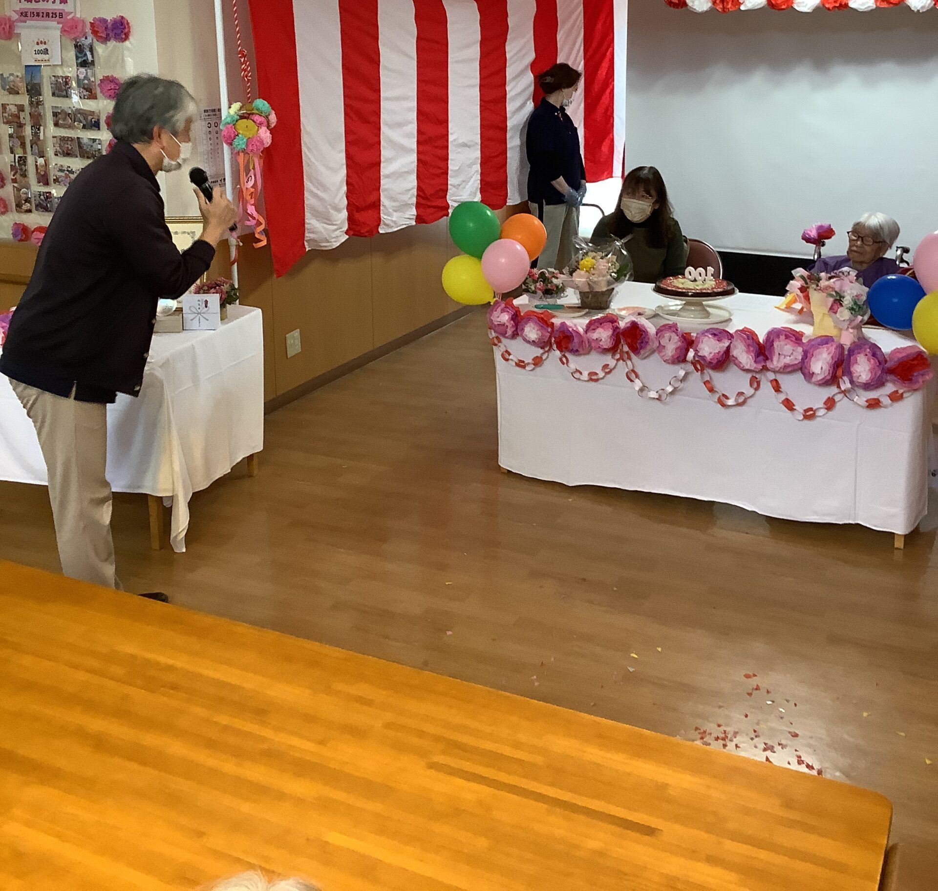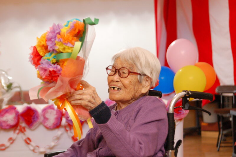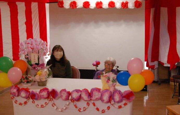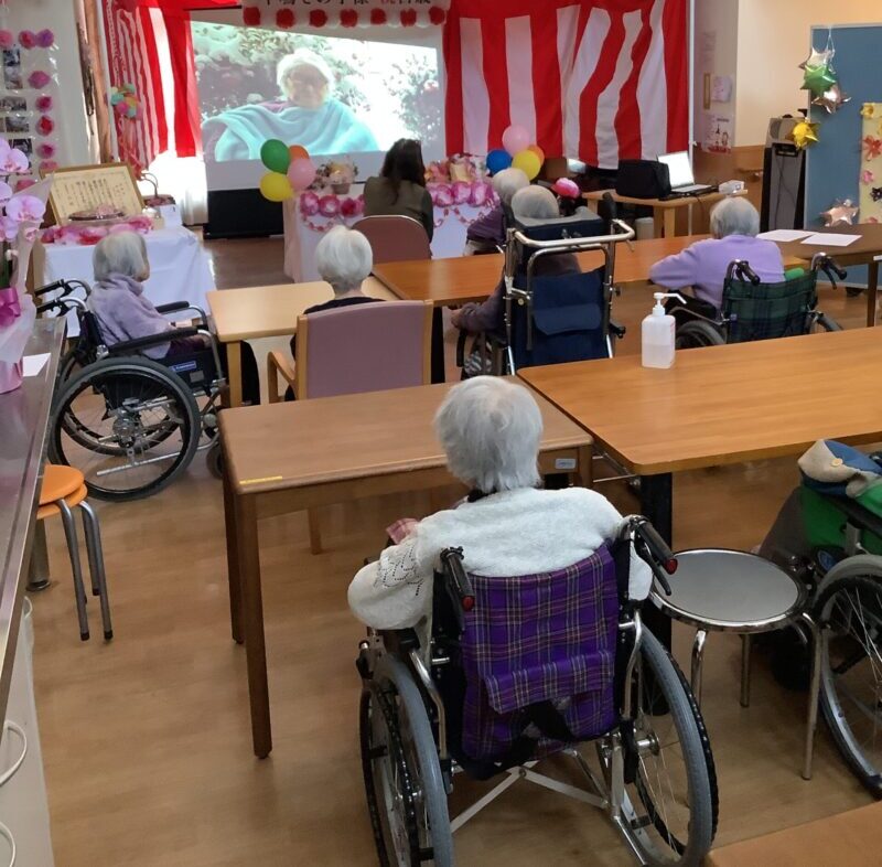 ご利用者様の100歳のお誕生日会をご家族と一緒にお祝いすることができました。