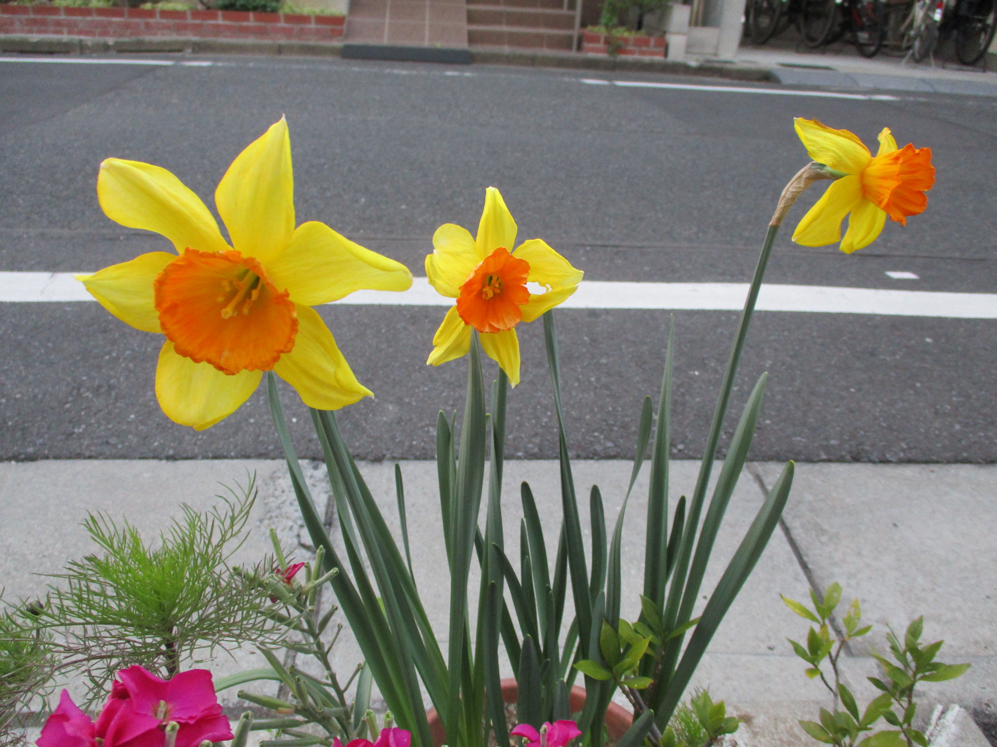 施設の周りの花壇に花が咲いています。ご入居者様と一緒に眺めています。ご来館の際はぜひご覧ください。
